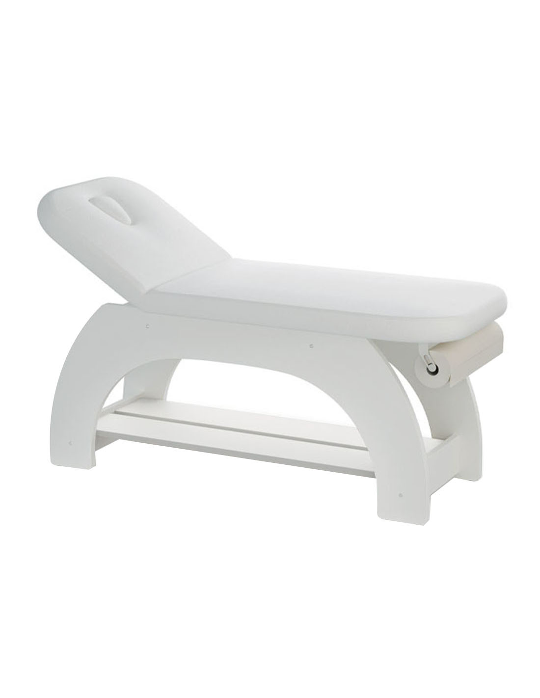 Il lettino Made è realizzato in nobilitato bianco opaco con piano d’appoggio disponibile in 3 diverse finiture. Il materasso in skai bianco è dotato di foro facciale, relativo tappo e portarotolo per garantire il massimo comfort. La testata e lo schienale sono regolabili manualmente consentendo di adattare il lettino alle esigenze specifiche di ogni cliente.