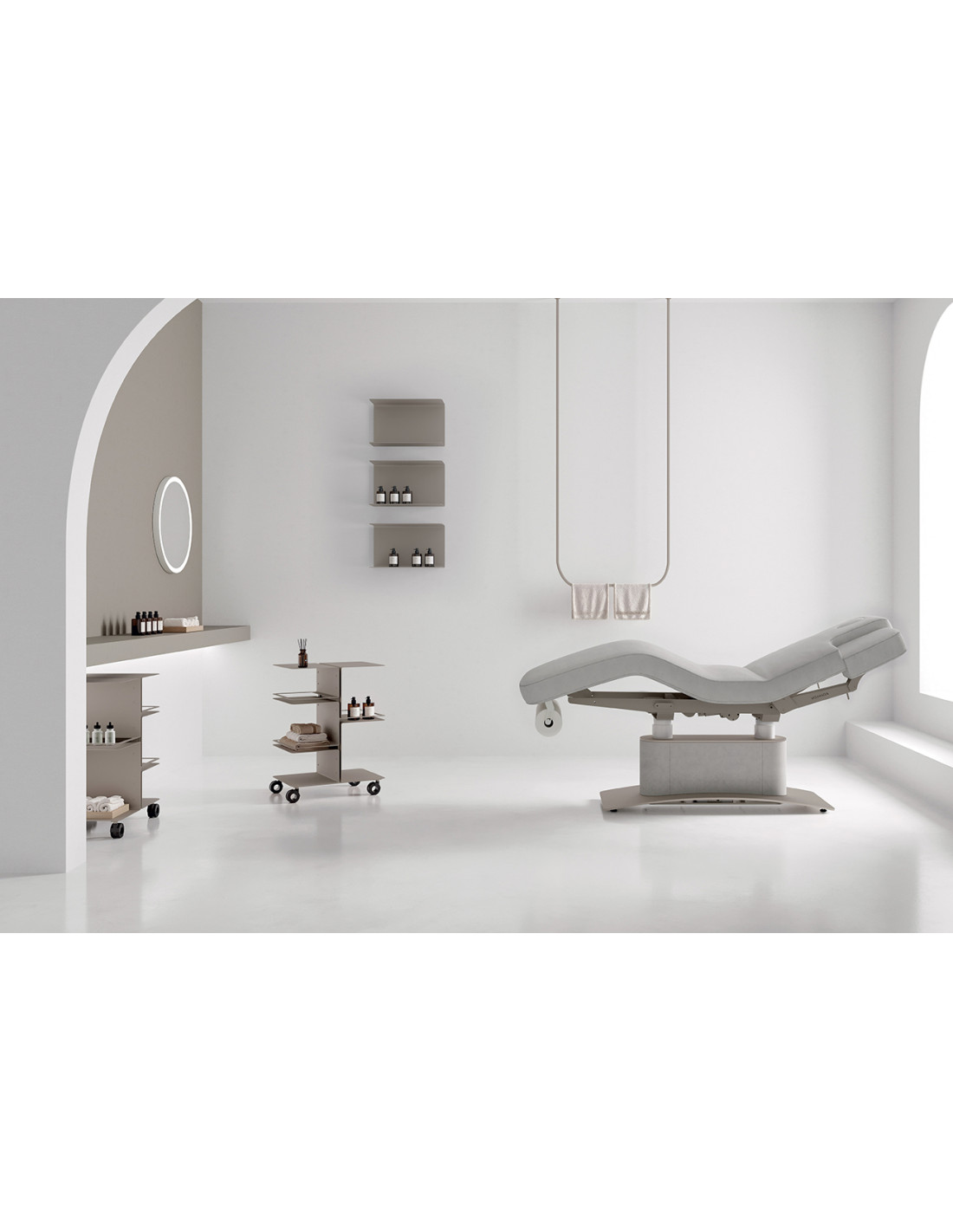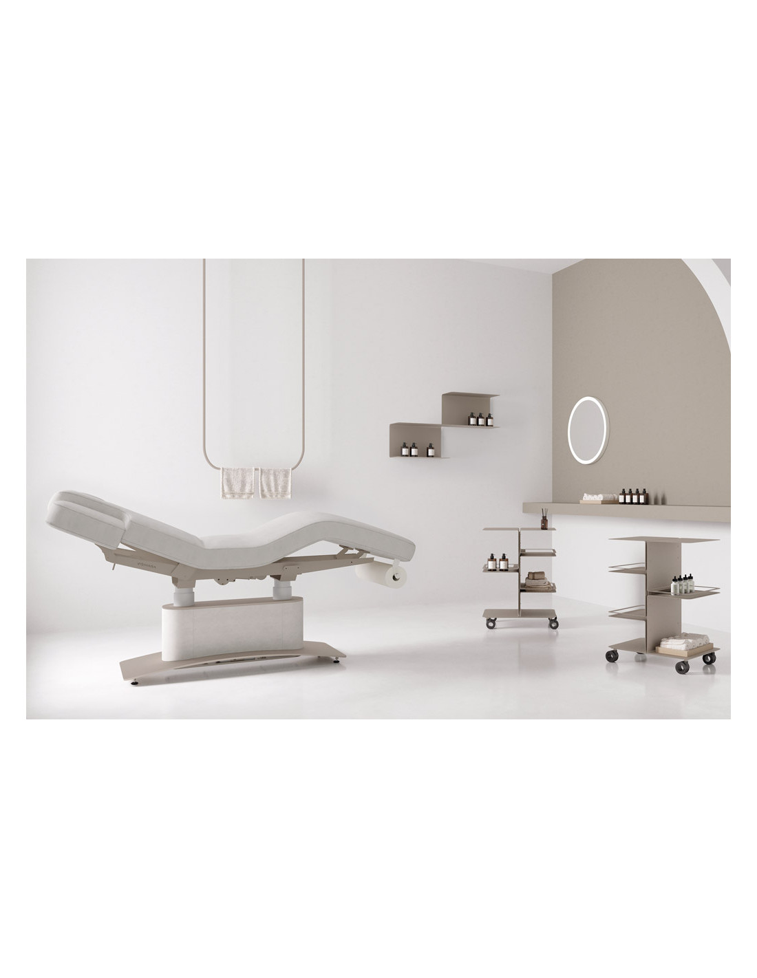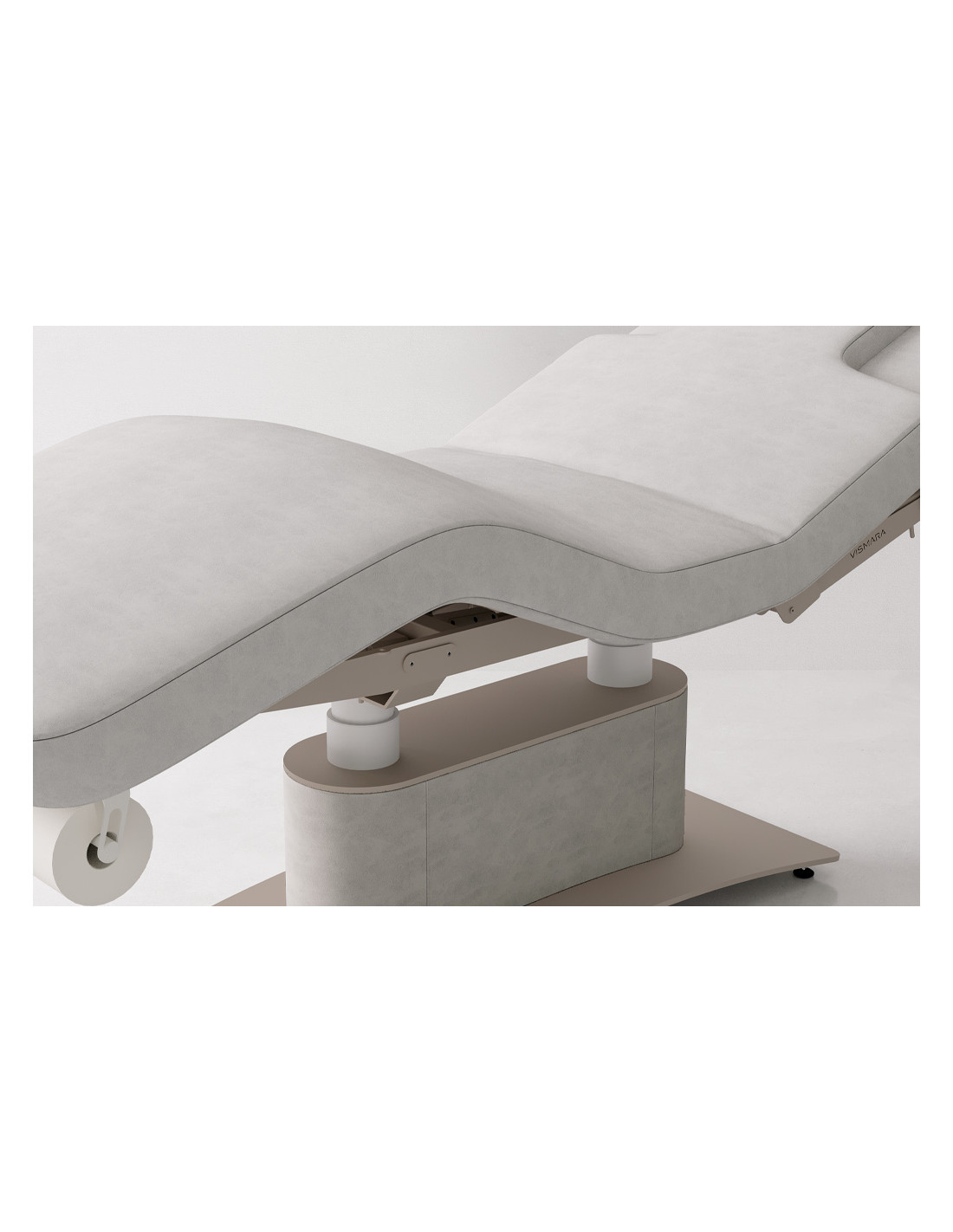 Il lusso del relax, la perfezione del design. Arcus è il lettino a doppia colonna, dotato di 4 motori. Si presta a qualsiasi tipo di trattamento grazie alle sue innumerevoli regolazioni; i movimenti del materasso sono gestiti da un comodo telecomando. La base in colore argento/dorata dona un tocco di prestigio e luminosità, trasformando ogni trattamento in un’esperienza di puro lusso. Materasso dotato di foro facciale con relativo tappo e porta rotolo. La struttura ergonomica assicura il massimo comfort, rendendo ogni momento di relax un vero rituale di benessere.