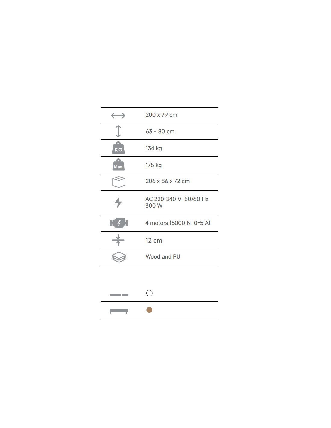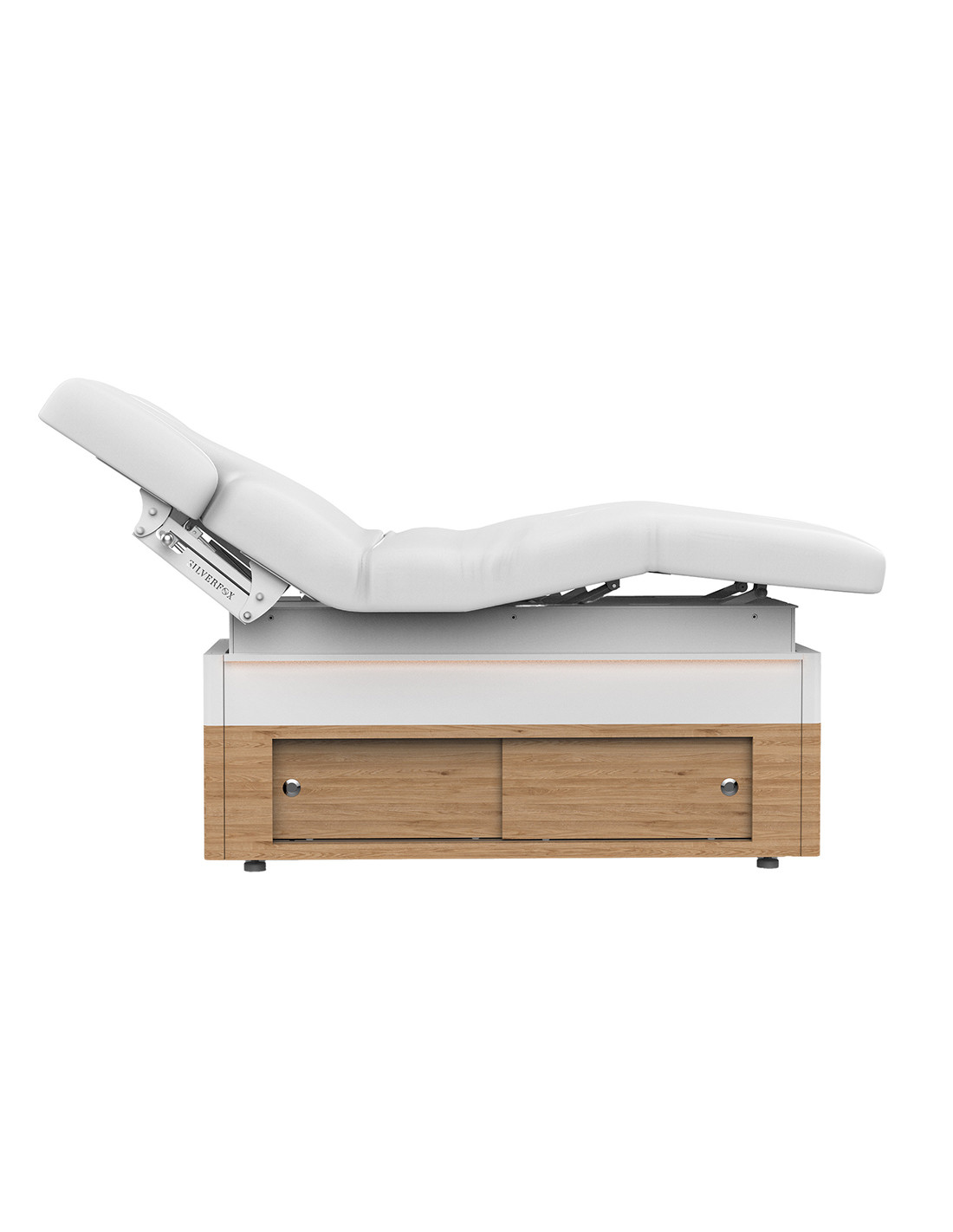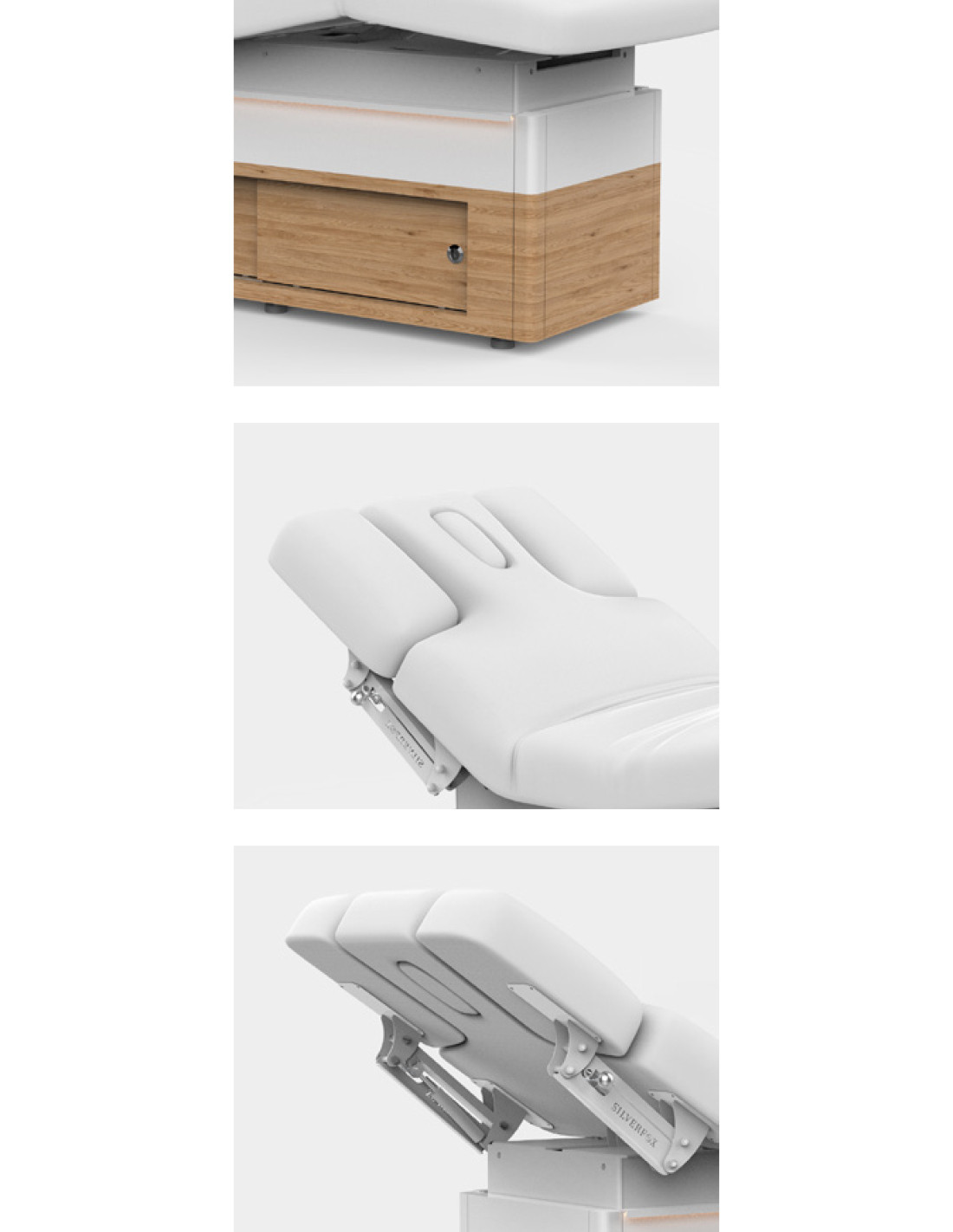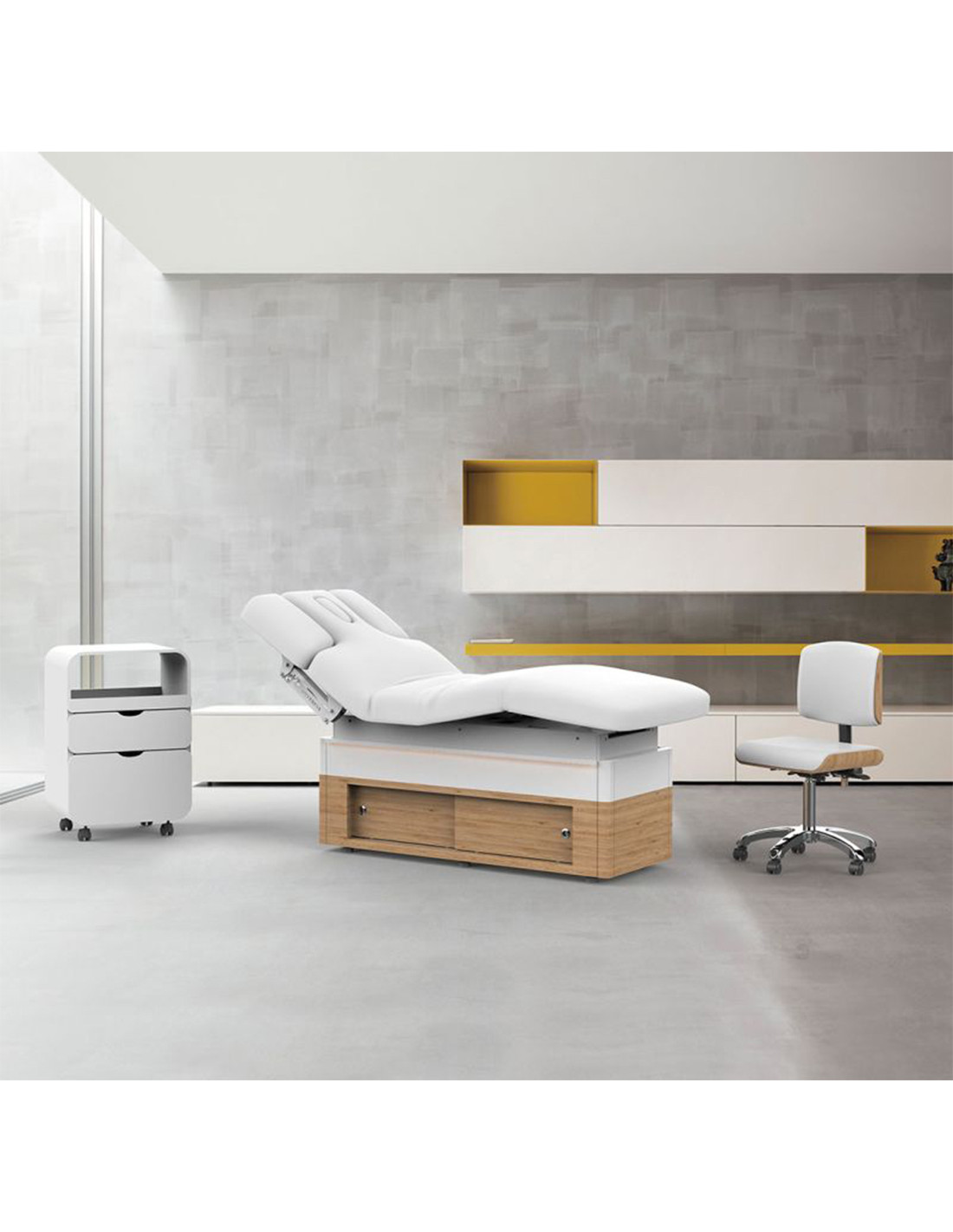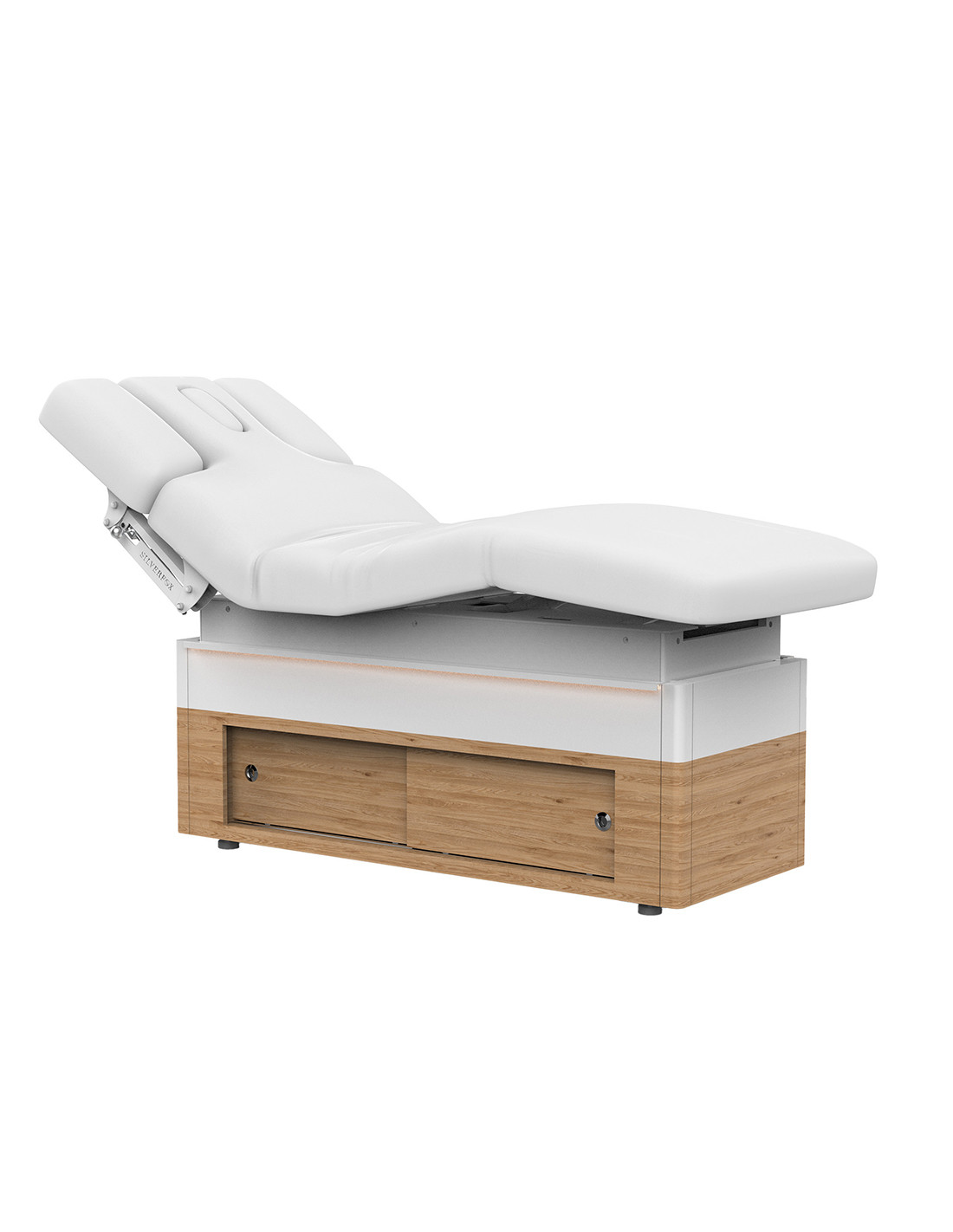Lettino d’ alta gamma dotato di 4 motori per la regolazione di altezza, inclinazione dello schienale, sezione delle gambe e inclinazione completa del lettino. Funzione termoriscaldante integrata: il calore facilita il rilassamento muscolare, ottimizzando i benefici del massaggio. Rivestimento in Ecopelle PU premium, base in legno robusta e stabile. Pratici cassettoni posti alla base del lettino permettono di alloggiare comodamente prodotti vari da massaggio.