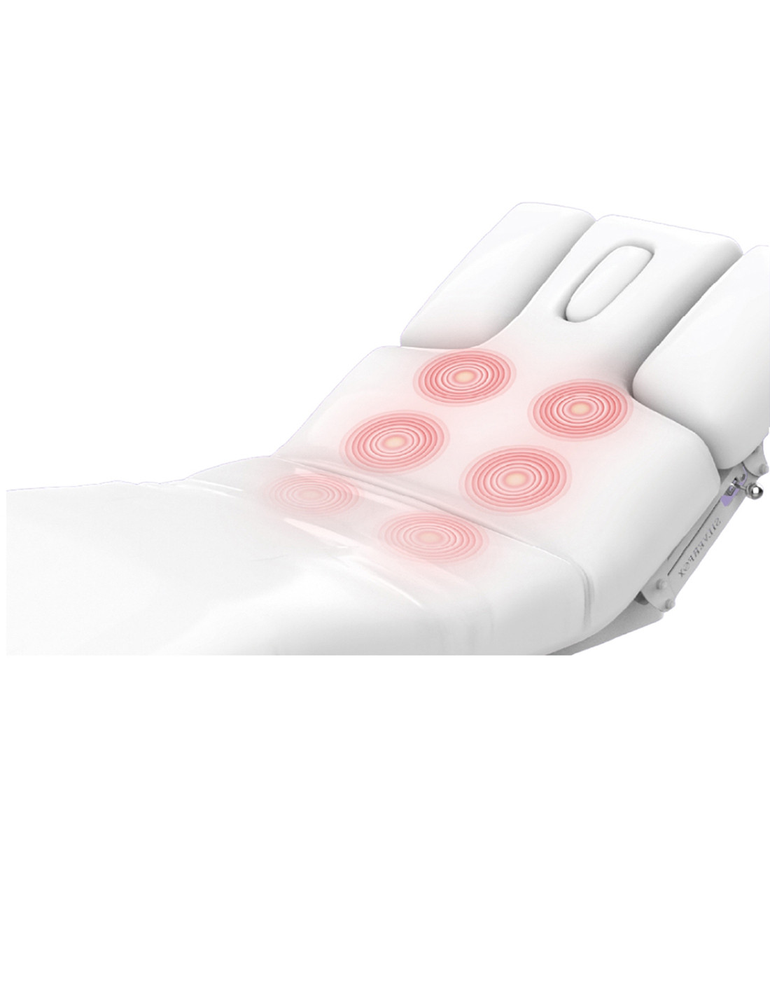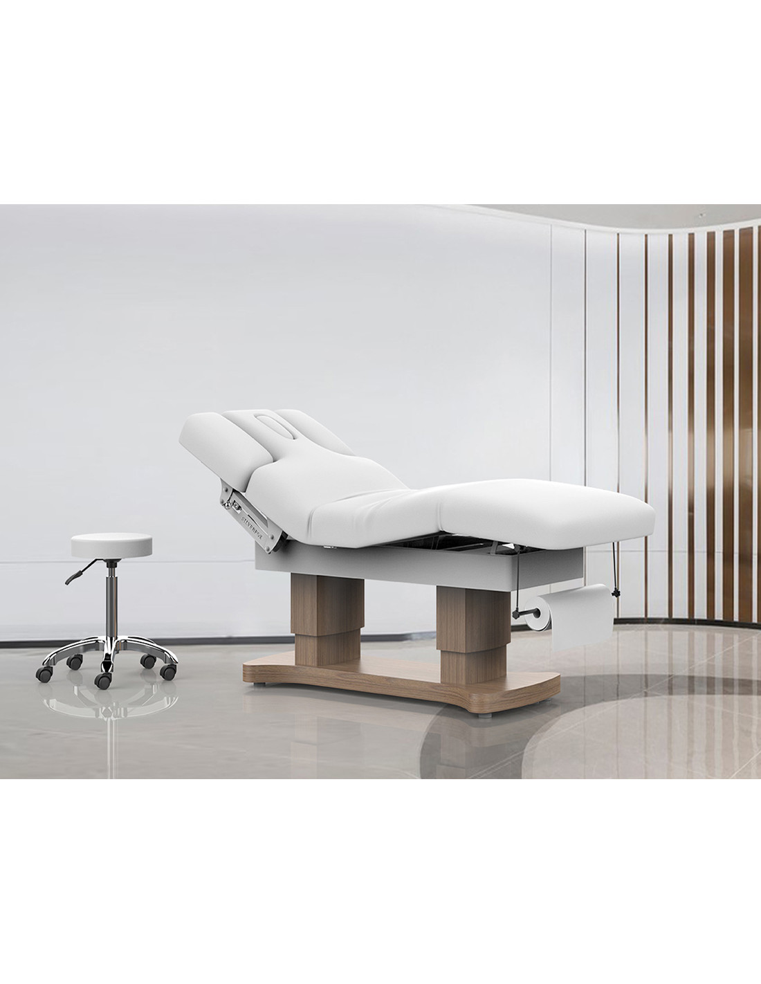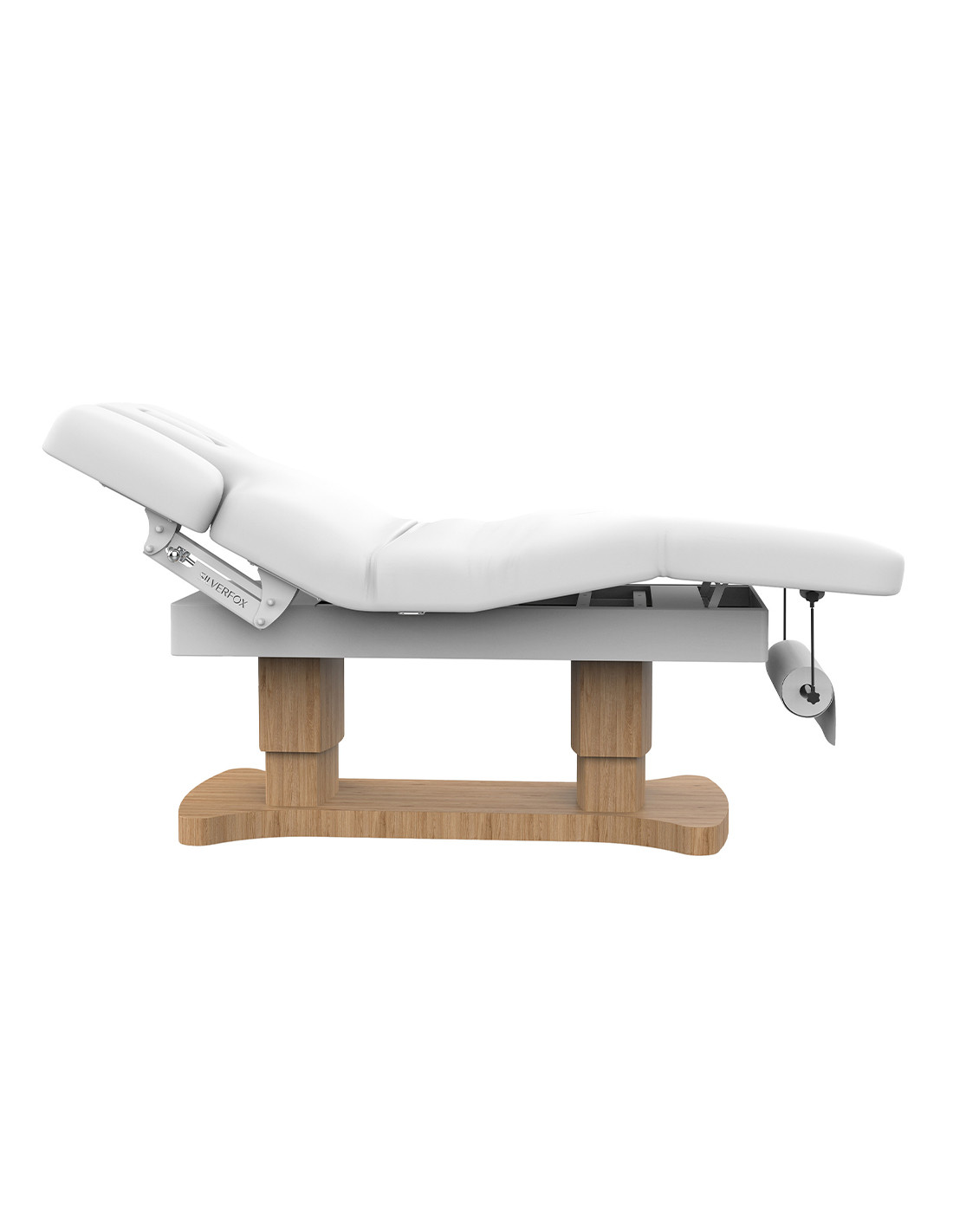 Lettino a 4 motori per la regolazione di altezza, l’inclinazione dello schienale, del poggiapiedi e la posizione della seduta. Dotato di un sistema di riscaldamento che garantisce un comfort termico ottimale. Foro per il viso e pratico portarotolo integrato. Rivestimento in Ecopelle premium facile da pulire. Il materasso è imbottito con un’alta densità di schiuma, la struttura è robusta e durevole, studiata per resistere a un uso intenso nel tempo.
