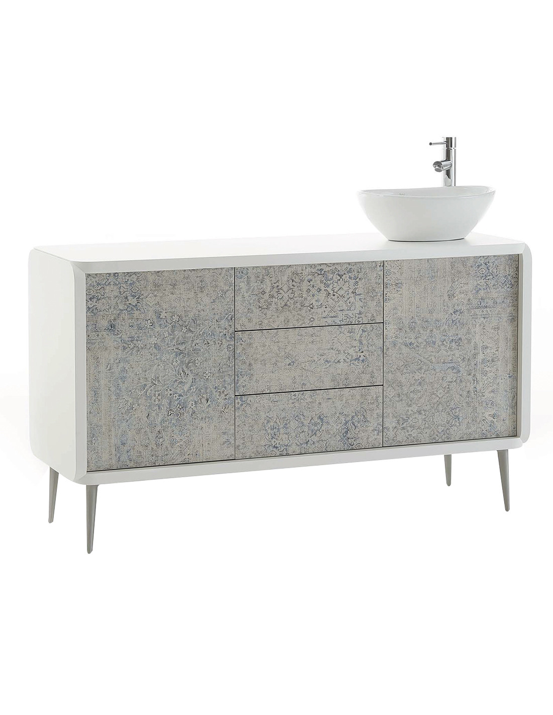 Il mobile Creo 1350 H2O è realizzato in legno Nobilitato bianco opaco e frontali disponibili in 8 diverse finiture ha linee semplici ma moderne e arreda, con originalità e stile, ogni ambiente. I piedini in alluminio satinato e l’apertura push/pull delle ante e dei cassetti assicurano praticità e raffinatezza. Dotato di due ante con ripiani, tre cassetti con guida a scomparsa con self-closing, chiusura ammortizzata, top in laminato, apertura push/pull, lavabo e miscelatore.